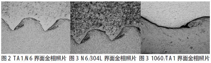 4.4 從界面形態(tài)的分析得出,鋁/ 鈦、鈦/ 鎳、鎳/ 不銹鋼界面呈規(guī)則的正弦波形,產(chǎn)生了比較明顯的塑性變形,未見影響其結(jié)合力學(xué)性能的金屬間化合物生成。